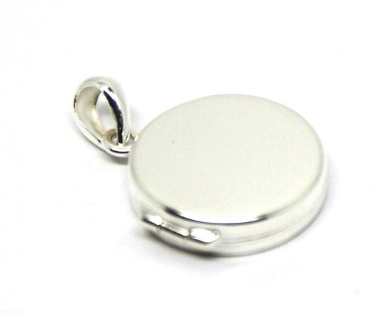 Genuine Sterling Silver 925 Small Flat Round Plain Locket With 2 Photos + Necklace Chain 40cm 45cm, 50cm, 55cm or 60cm