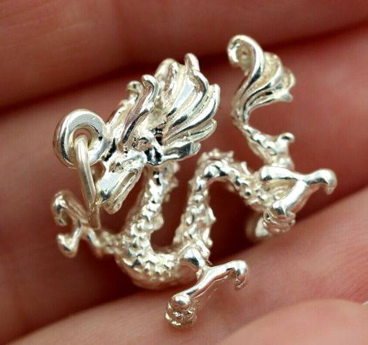Genuine Sterling Silver 925 Large Chinese Dragon Pendant + Necklace