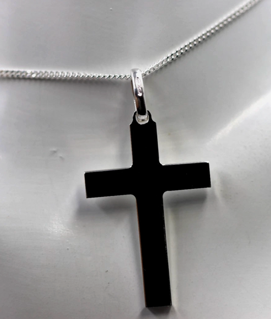 Sterling Silver 925 Plain Cross Pendant & 60cm Kerb Chain Necklace