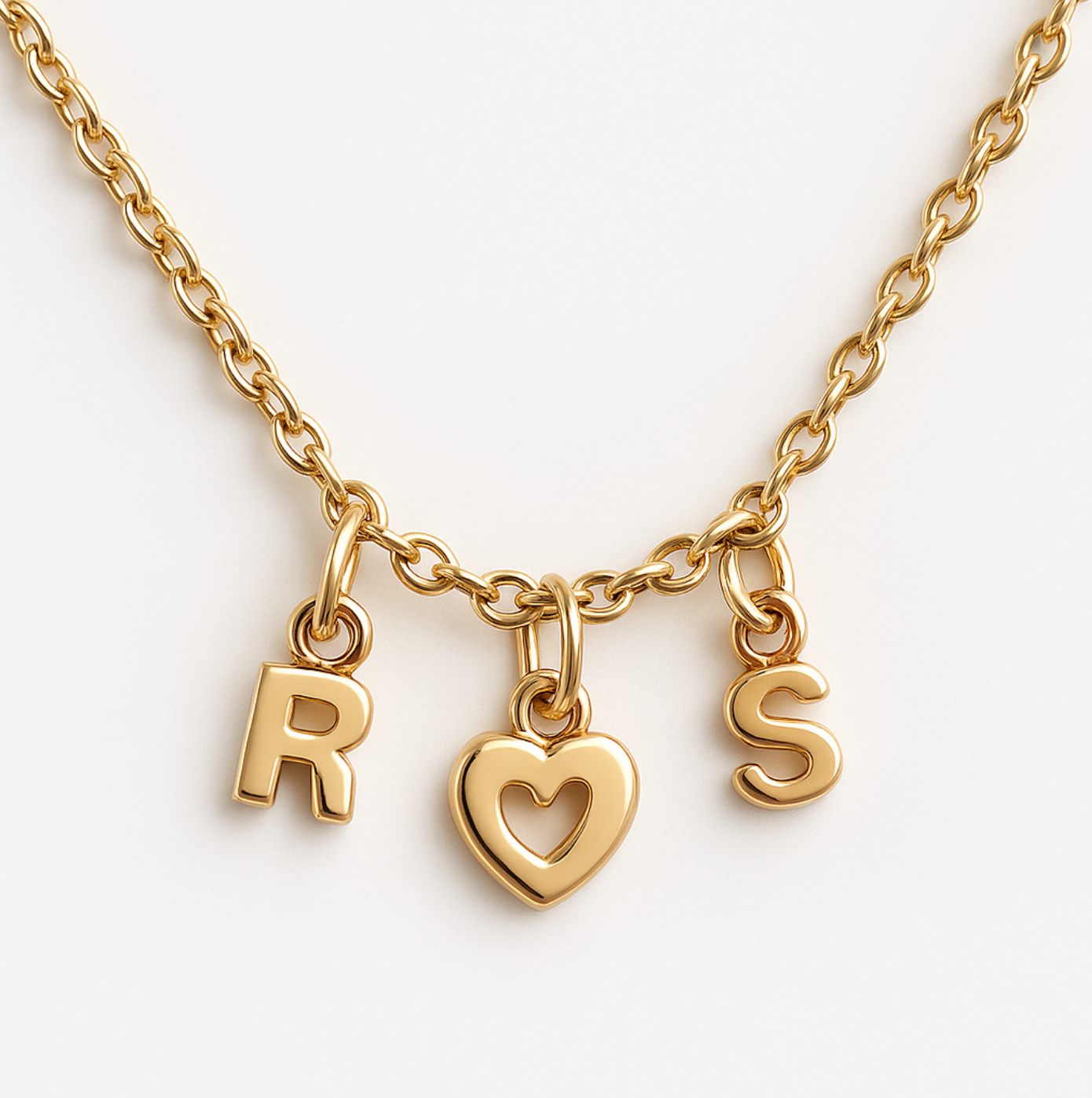 Genuine 9ct Solid Yellow or Rose Gold 28cm Belcher Anklet + Heart, Initial and Horse shoe Charms.