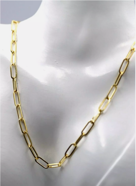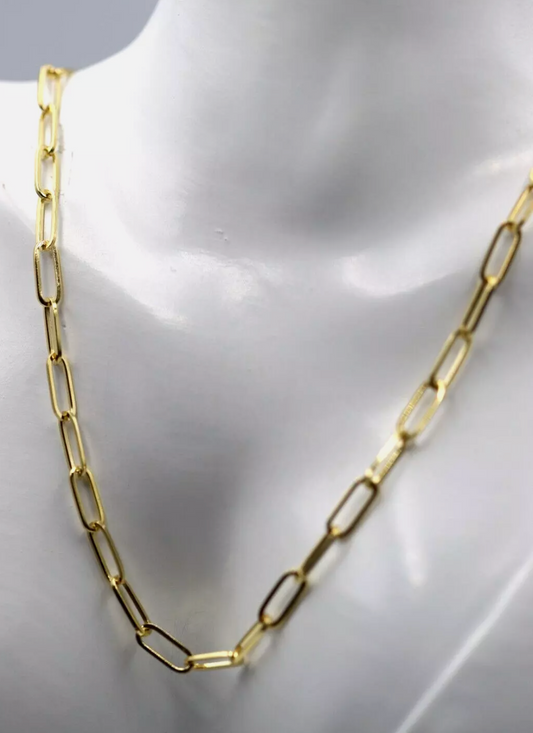 Genuine 9ct Yellow Gold Handmade Solid Paperclip Necklace Chain 50cm