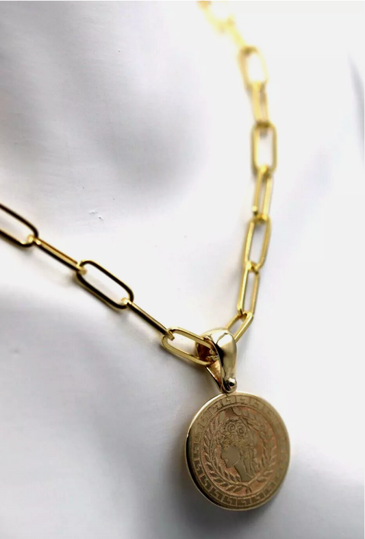 Genuine 9ct Yellow Gold Solid Paperclip 50cm Necklace + Athena Pendant