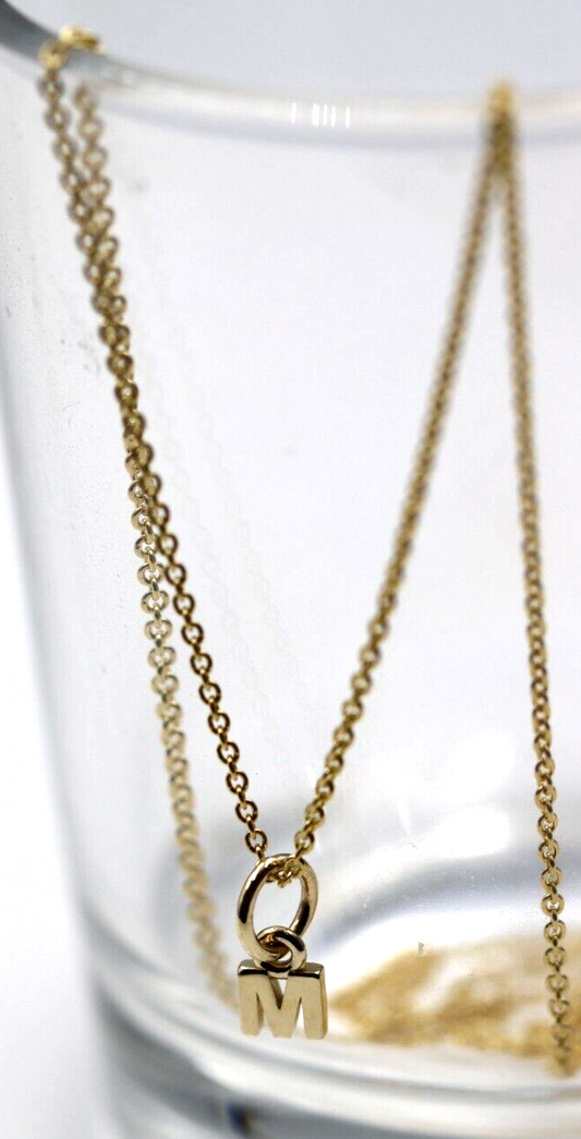 Genuine 9ct Yellow or Rose Gold 58cm Ladies Slider Heart Necklace Chain + Small Initial M Charm