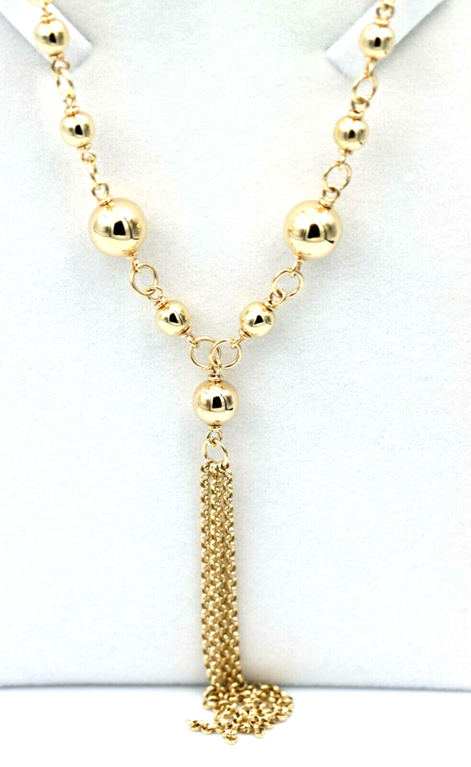 Kaedesigns 9ct 375 Solid Yellow, Rose or White Gold Ball chain 55cm Belcher Curb link Necklace with tassels Chain