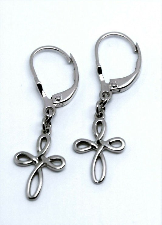 Genuine 9ct Yellow, White Or Rose Gold Continental Hooks Celtic Cross Earrings