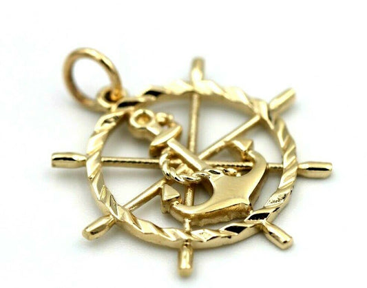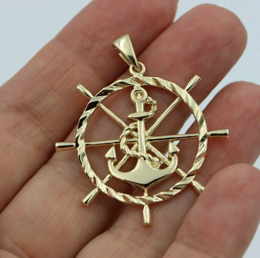 Huge Large 9k 9ct Yellow, Rose or White Gold Anchor Wheel Charm Pendant Nautical Pendant
