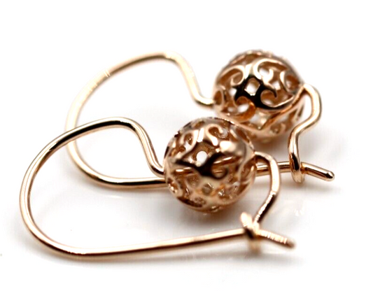 Kaedesigns, Genuine 9ct Yellow, Rose or White Gold 10mm Euro Ball Drop Filigree Earrings