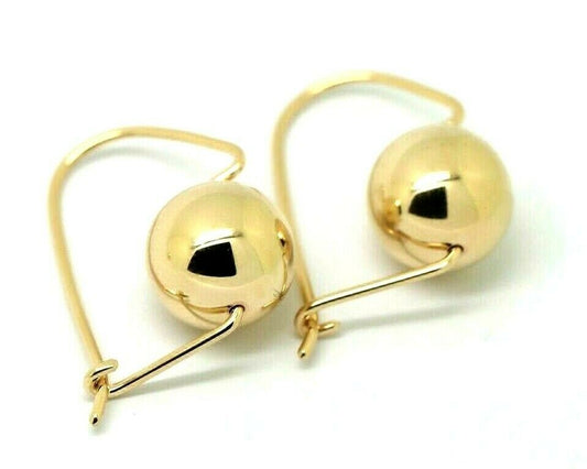 Genuine Large Hooks 9ct Yellow, Rose or White Gold 10mm Euro Ball Drop Earrings