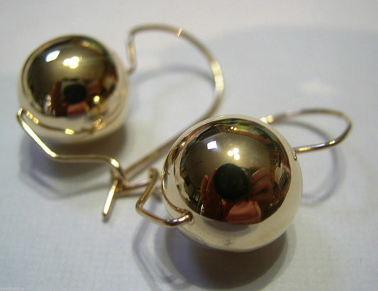 Genuine 9ct 9k Yellow Or White Or Rose Gold 375 14mm Half Ball Hook Earrings