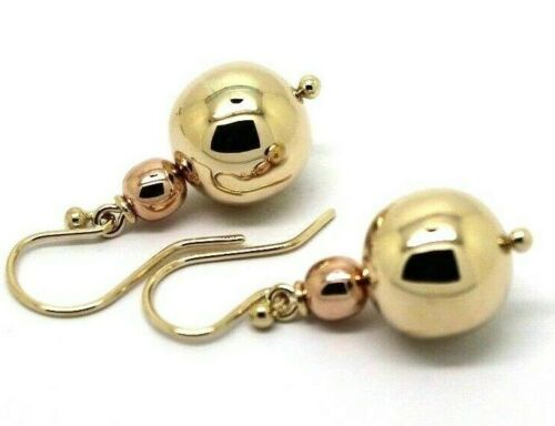 Kaedesigns Genuine Huge 9ct 9K Yellow & Rose Gold Hook Ball Drop Earrings