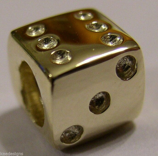 Kaedesigns Genuine New 9ct Yellow or Rose or White Gold or Silver Dice Bead Charm for bracelet