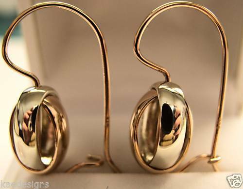 Genuine 9ct 9kt Rose And White Gold Spinning Oval Belcher Earrings