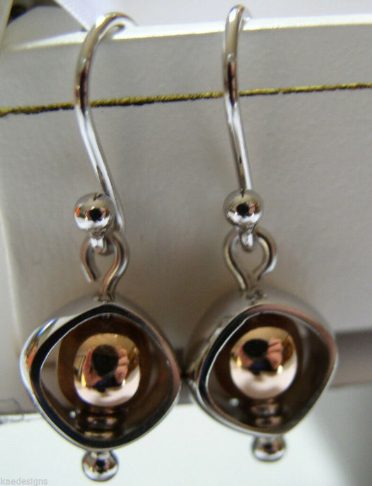 Kaedesigns Genuine 9ct 9kt White & Rose Gold 375 Belcher Ball Drop Earrings