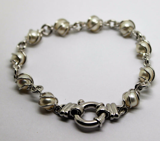 Kaedesigns 22cm long New Sterling Silver Bolt Ring Freshwater White Pearl Bracelet