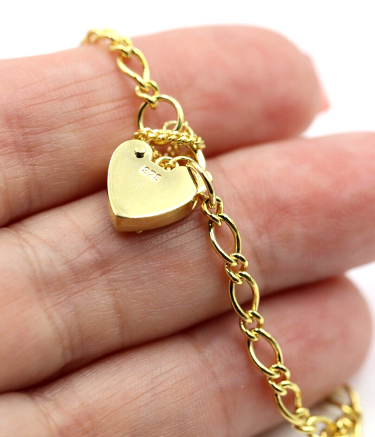 Genuine 9ct Yellow Gold Oval Figaro Child Bracelet + Heart Padlock Blue Bird