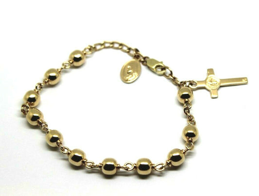 Genuine 9ct Yellow, Rose or White Gold 6mm Ball Rosary Bead Bracelet 21cm Long Mary Miraculous Pendant