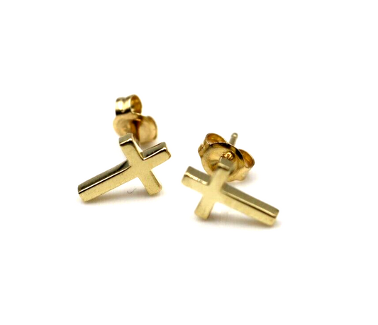 Genuine 9ct or 18ct Genuine Yellow, Rose or White Gold Cross Earrings Studs - 10mm long x 6mm