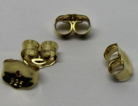 2 Pairs Sgp Gold Yellow Plated Sterling Silver Earrings Butterfly Backs 4.8mm