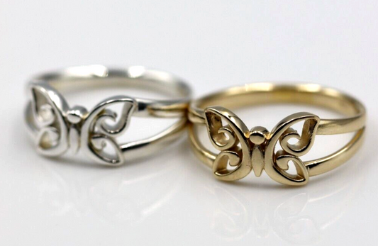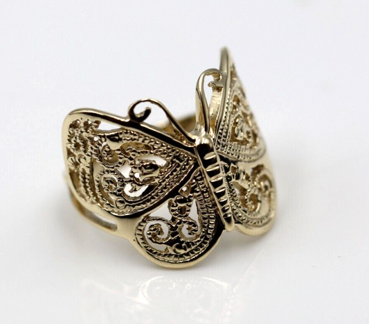 Large Solid 9ct Yellow, Rose or White Gold Filigree Butterfly Ring - Choose your size