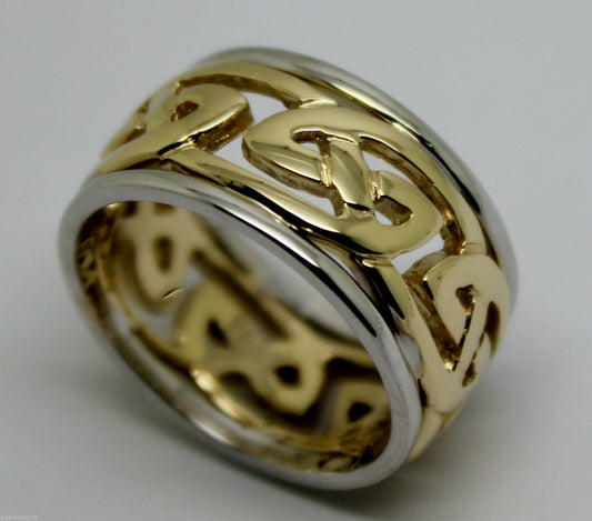 Size T 1/2 Genuine Heavy Solid 9ct Yellow & White Gold 12mm Large Celtic Ring