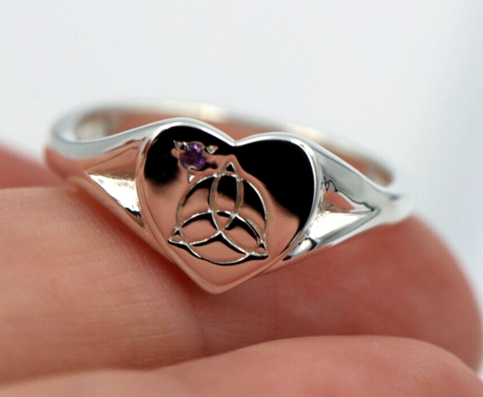 Kaedesigns,Genuine Sterling Silver Full Solid Celtic Signet Ring Amethyst Stone