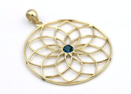 Genuine 9k 9ct Yellow, Rose or White Gold Flower of Life Pendant Set London Blue Topaz