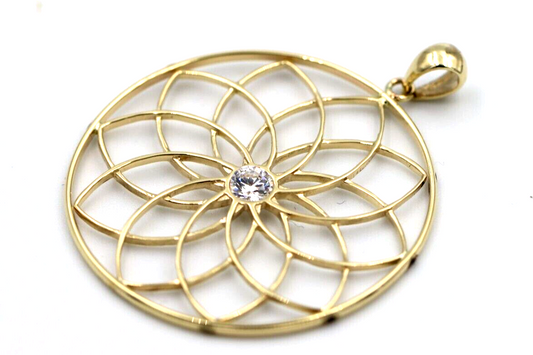 Genuine 9k 9ct Yellow Gold Flower of Life Pendant Set Cubic Zirconia
