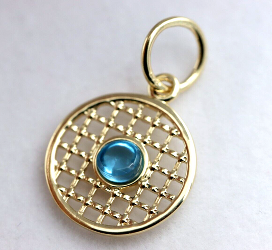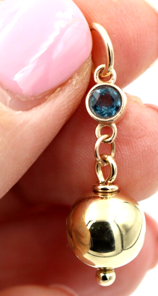 9ct Genuine Rose / Yellow Gold London Blue Topaz Ball Round Circle Pendant