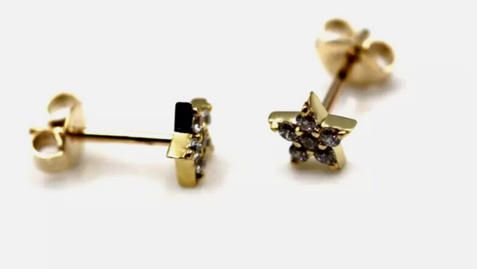 Genuine 9ct 9kt Yellow Gold Cubic Zirconia Star Stud Earrings
