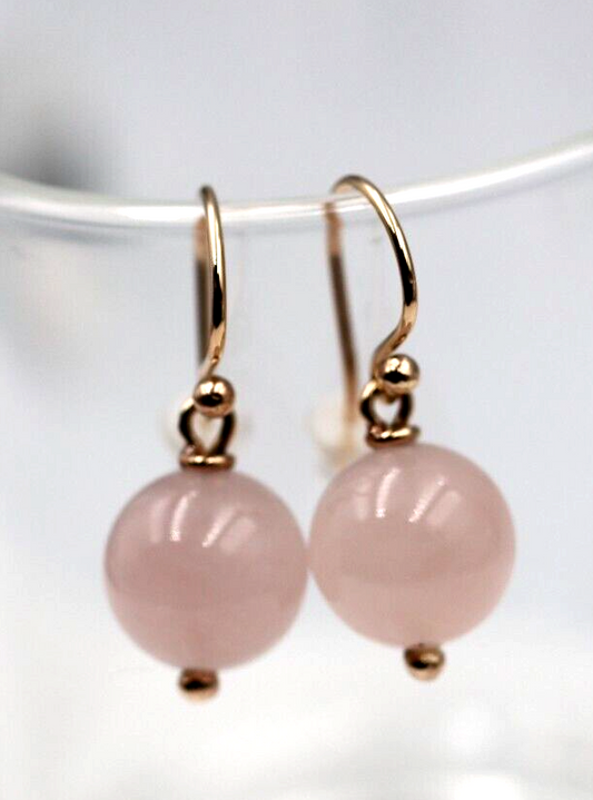 Genuine 9ct 9K 375 Rose Gold 11mm Rose Quartz Hook Earrings -Free post