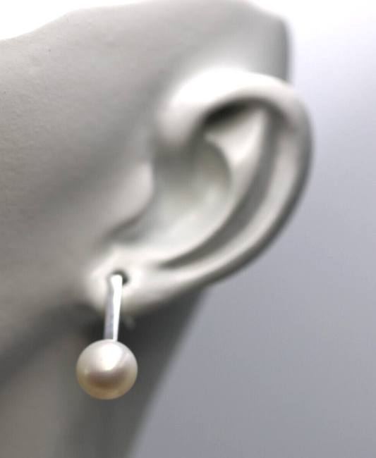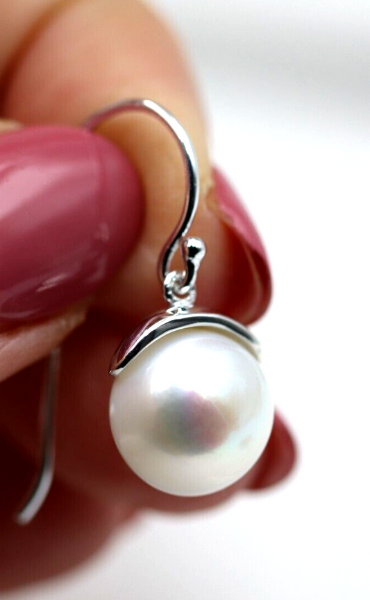 Genuine Sterling Silver 925 8mm Freshwater Cultured Pearl Earrings Hook