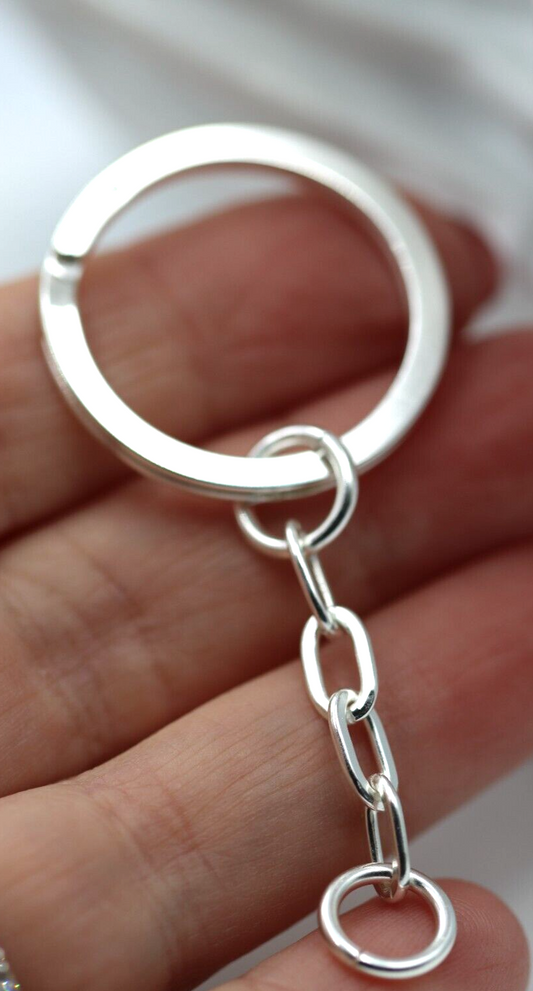 Genuine Sterling Silver 925 29mm Key Ring with Chain