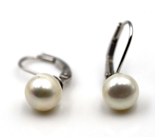Sterling Silver 925 7.7mm Freshwater White Button Pearl Earrings