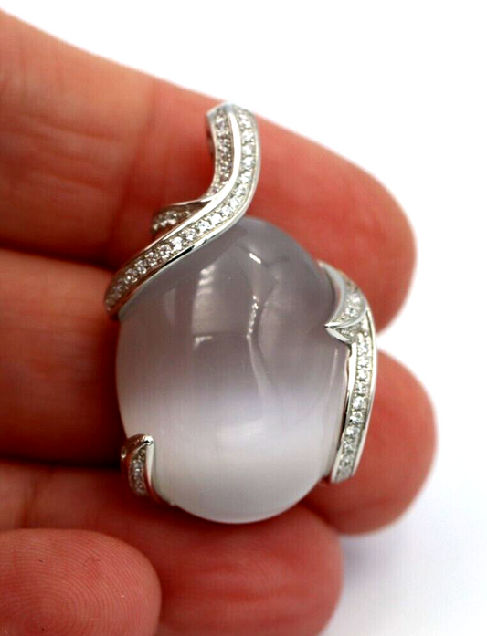Genuine Cubic Zirconia 925 Sterling Silver Large Moonstone Pendant