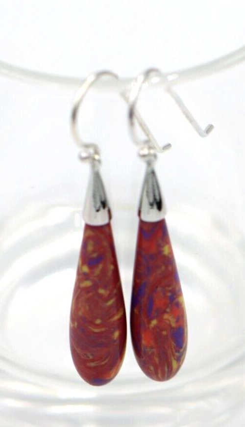Sterling Silver 925 Ball Earrings Coral Marble Resin Earrings