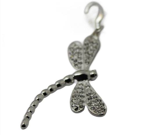 Sterling Silver 925 Dragonfly Cubic Zircon Pendant + Clasp