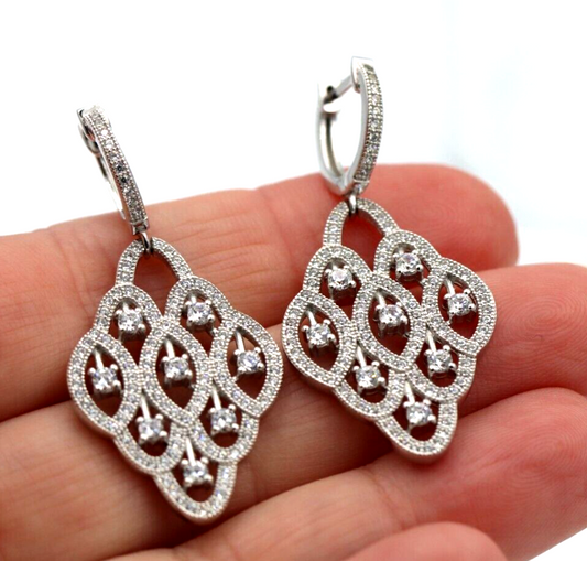 Genuine 925 Sterling Silver Big CZ Chandelier Cocktail Earrings