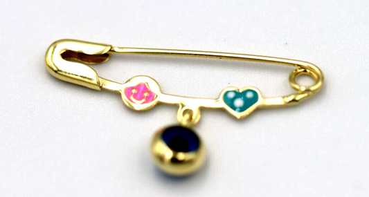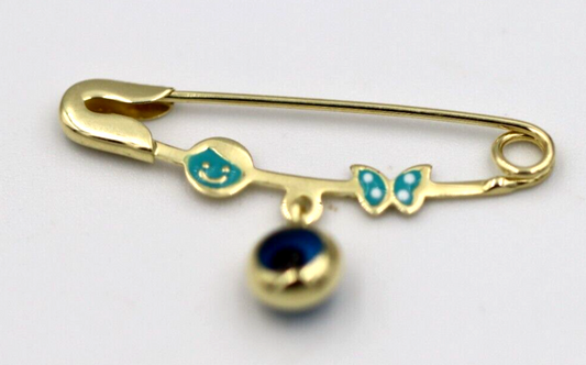 14ct Yellow Gold Baby Child's Kids Cubic Zirconia Brooch Evil Eye Mati