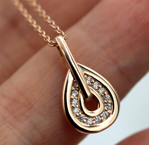 Sterling Silver 925 Rose Pink GP White CZ Teardrop Pendant with 42cm Chain + 5cm Ext