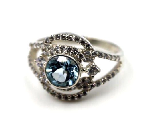 Size S / 9 Genuine Sterling Silver Ring Blue Topaz CZ Ring