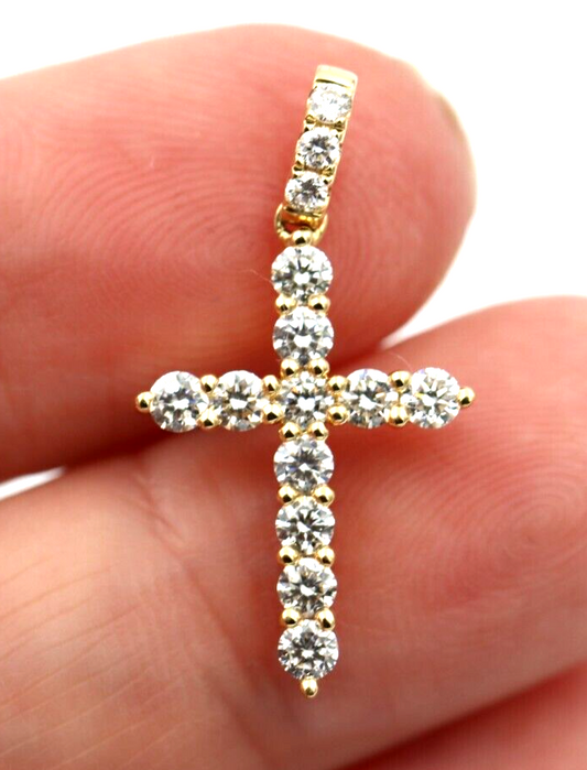 0.699cts Genuine 18ct 750 Yellow Gold Round Diamond Cross Pendant