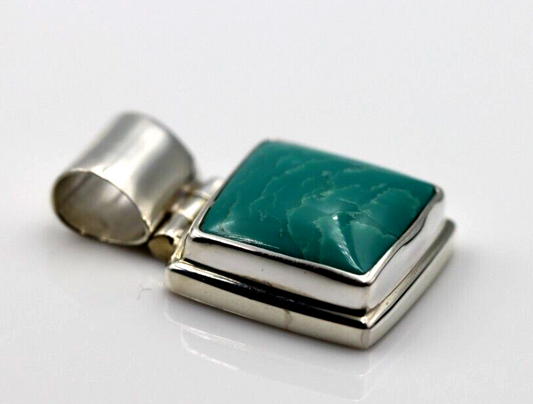 Genuine Sterling Silver Blue Turquoise Set Square Pendant