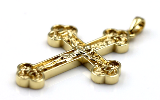 Genuine Heavy 18ct 18kt 750 Yellow, Rose or White Gold Byzantine Cross Pendant