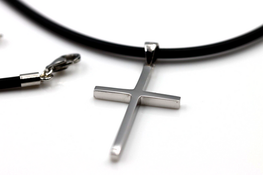 Neoprene Nielit Stick Sterling Silver Cross Pendant + Rubber Chain Necklace