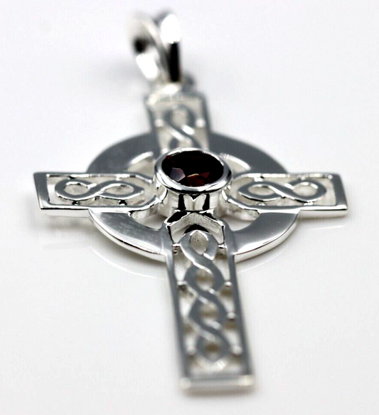 Kaedesigns Large Sterling Silver 925 Garnet Celtic Cross Pendant