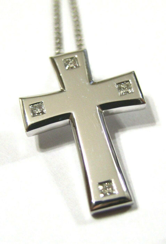 Genuine 18ct / 750 White Gold Crucifix Cross And Genuine Diamond Pendant