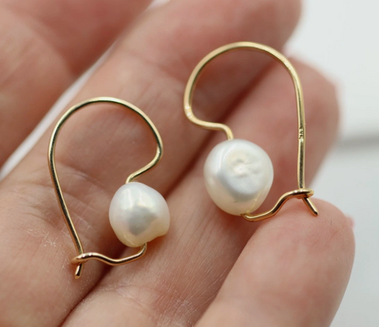 Genuine New 9ct 9k Yellow or Rose Gold 10mm White Baroque Freshwater Pearl Earrings