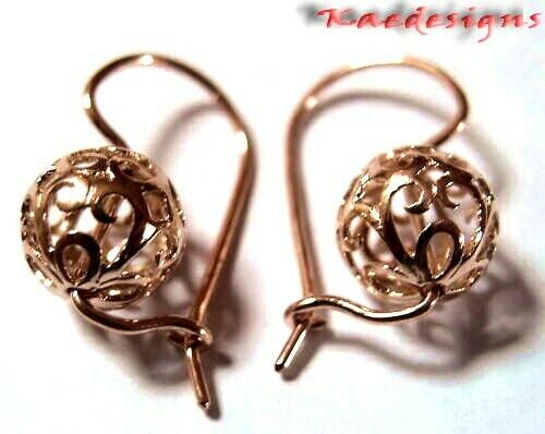 Kaedesigns, Genuine 9ct Yellow, Rose or White Gold 10mm Euro Ball Drop Filigree Earrings