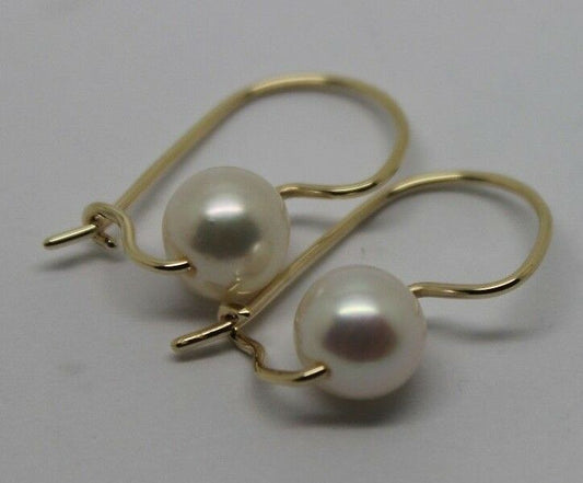 Genuine 9ct 9k Yellow, Rose or White Gold 8mm White Pearl Hook Earrings