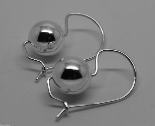 Genuine Sterling Silver Ball Hook Earrings 8mm, 10mm, 12mm, 14mm, 16mm